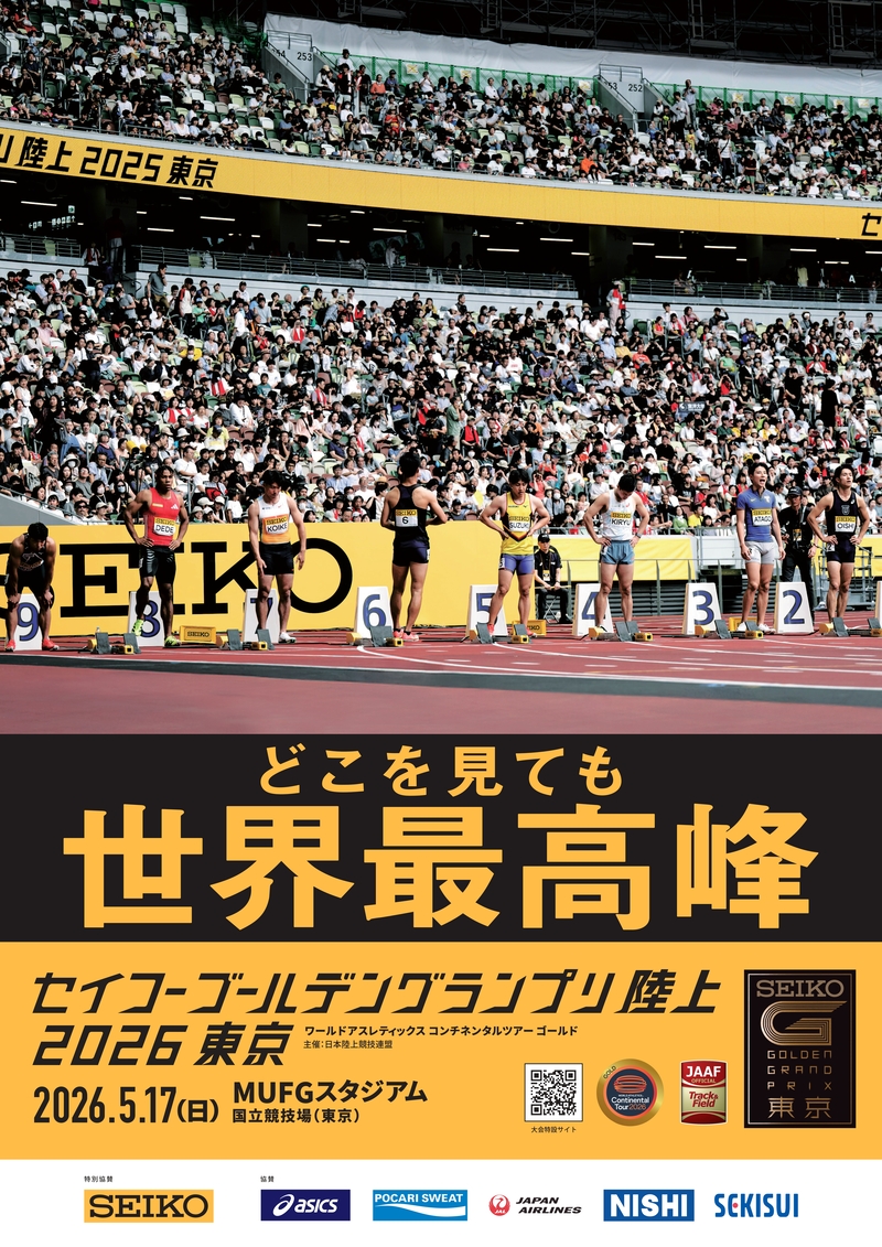 2025年9月、「東京2025世界陸上」が世界中の注目を集め、延べ約62万人が熱狂し、大きな感動と熱気を生み出しました。その熱を冷ますことなく、2026年5月17日(日)に「セイコーゴールデングランプリ陸上2026東京(以下、セイコーGGP)」をMUFGスタジアム(国立競技場)で開催します。