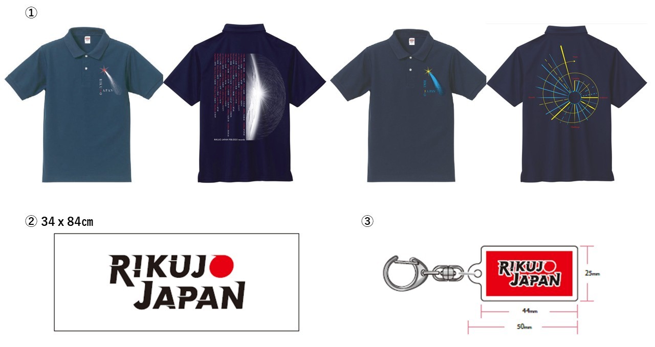 ①RIKUJO JAPANポロシャツ(記録柄・スパイラル柄) – 各3,500円(税込)