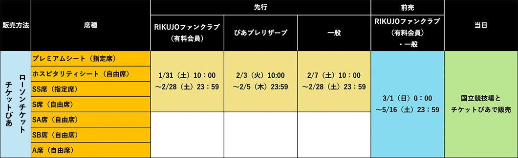 - チケットのお申し込みには「RIKUJOファンクラブ」無料会員への登録が必要です。